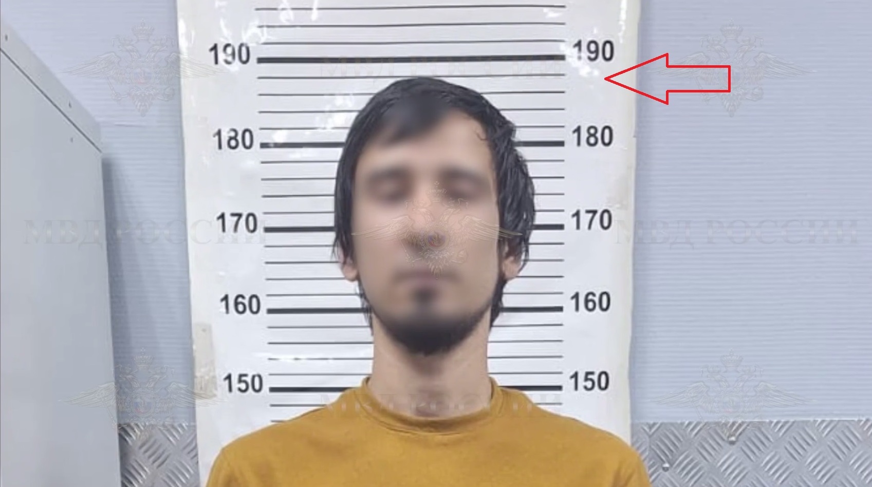 При этом бросается в глаза внешнее несходство задержанного мужчины с человеком на видеозаписи в метро. При фотографировании в полиции ростомер дает отметку не менее 188 см, то есть рост заметно выше среднего. Лицо на видеокадрах показано нечетко – однако видно, что на платформе стоял и затем зашел в вагон брюнет с бородкой, который не выделяется ростом среди окружающих. Можно сличить эти кадры на скриншотах ниже (указывающие отметки внесены редактором «Курьер-Медиа»).