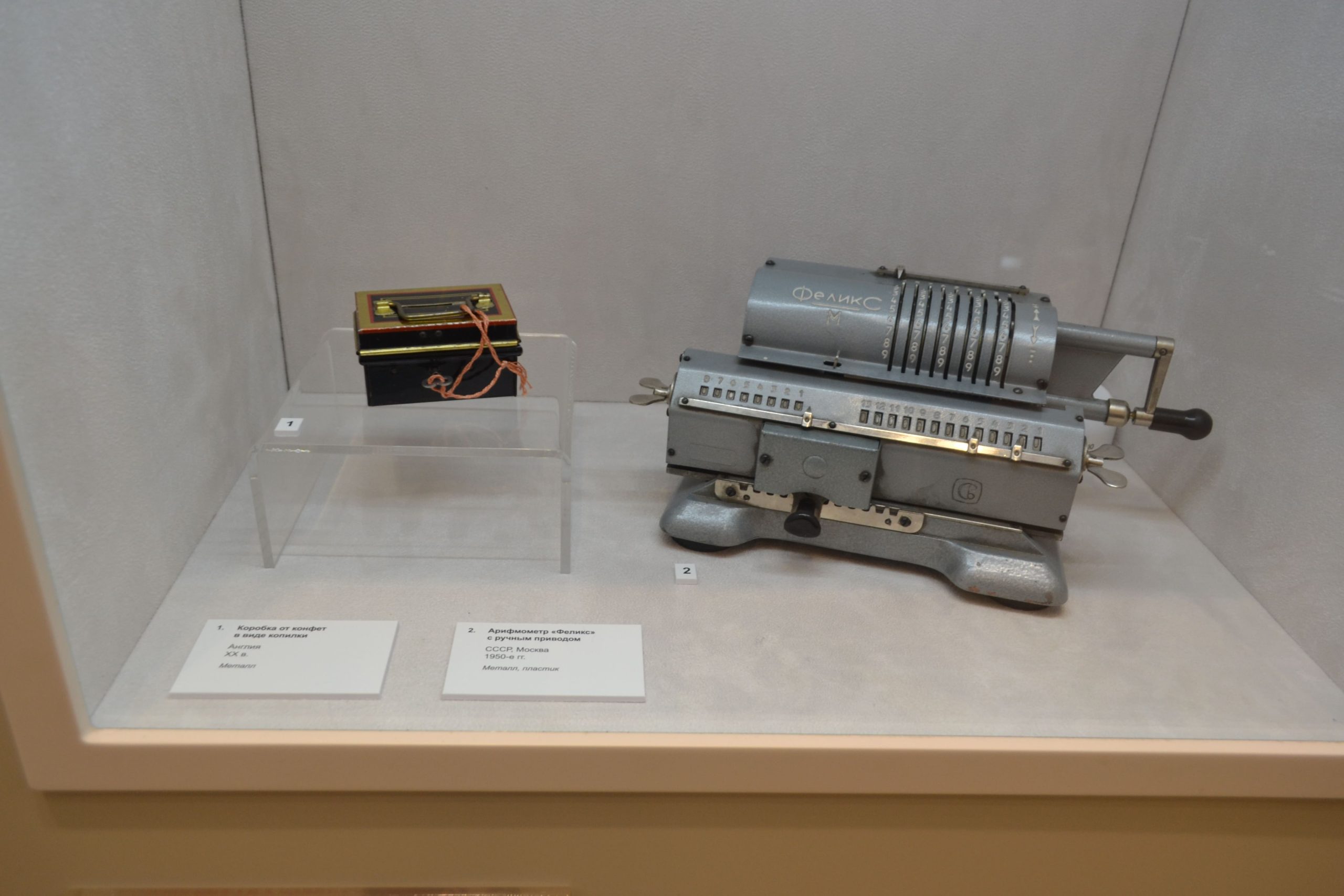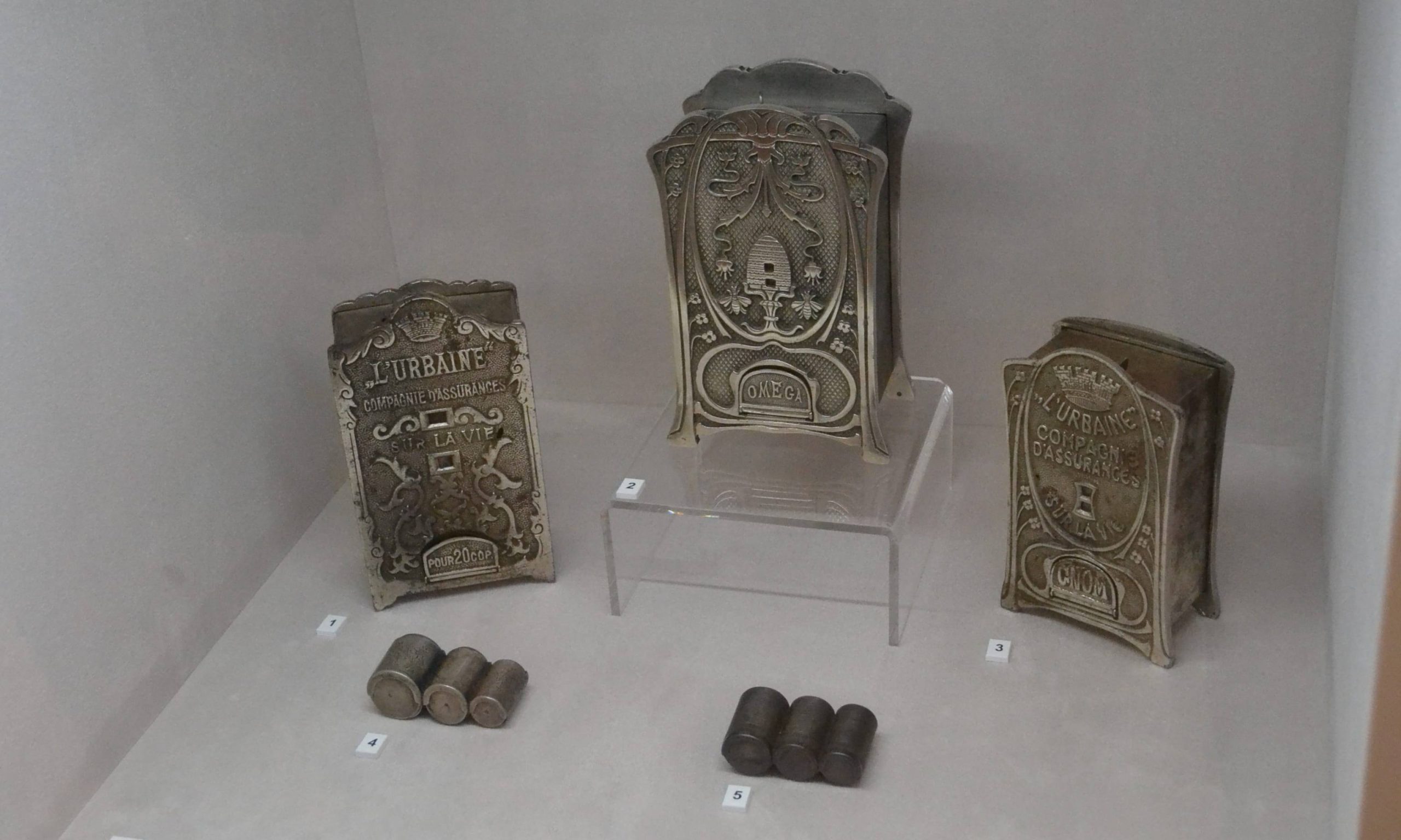 Среди экспонатов можно увидеть разные виды кошельков, монетницы, копилки. Изготовление копилок в XIX веке стало отдельным видом искусства, их делали на заказ и дарили постоянным клиентам банкирские дома и страховые общества. Некоторые устройства имели особый механизм и могли открыться лишь после накопления определенного количества монет.